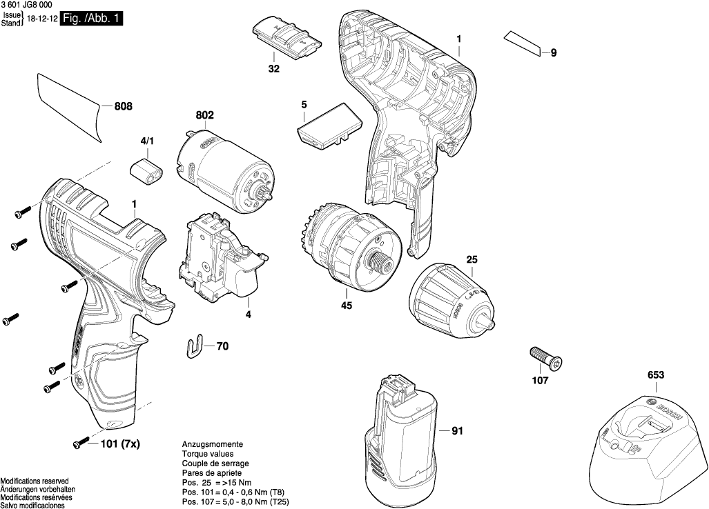 Dibujo técnico de los/las Bosch 3601JG8000 ( GSR120-LI )