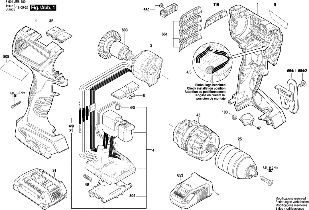 Dibujo técnico de los/las Bosch 3601JE8100 ( GSR18V-EC )