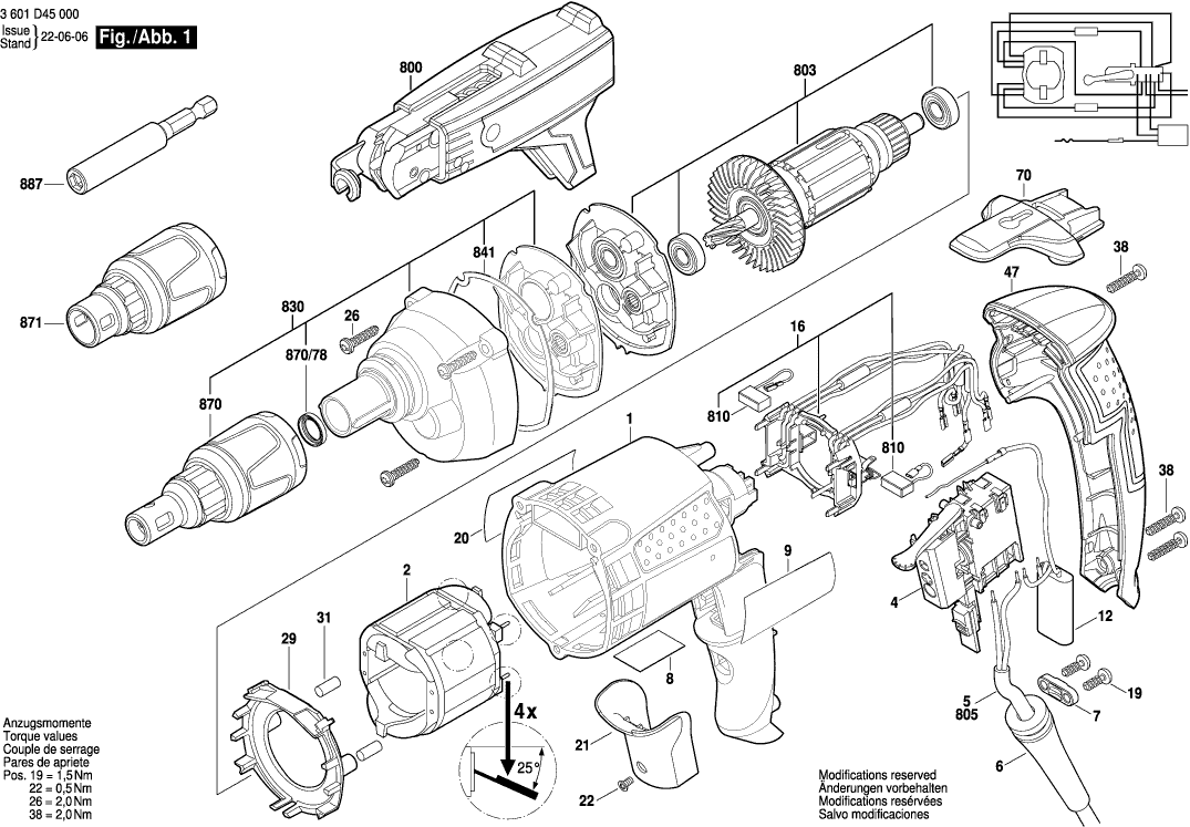 Lista de las piezas de repuesto de Bosch 3601D45000 ( GSR6-25TE )