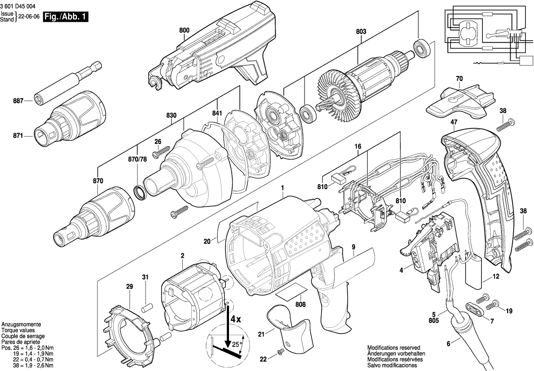 Lista de las piezas de repuesto de Bosch 3601D45004 ( GSR6-25TE )