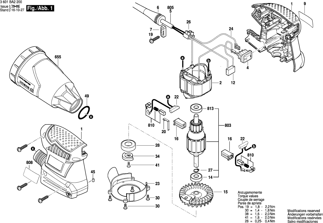 Lista de las piezas de repuesto de Bosch 3601BA2200 ( GSS160-1A )