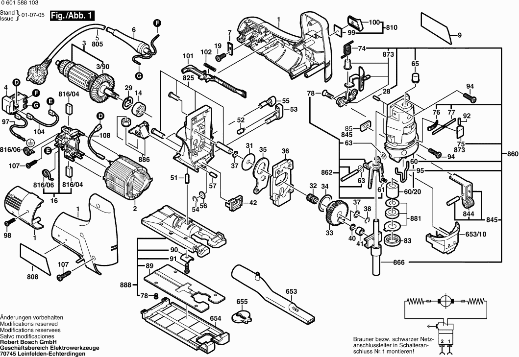 Aquí encontrará todas las piezas y dibujos técnicos disponibles de 'Bosch 0601588060 ( GST100 )'. Desde aquí podrá pedir todas las piezas deseadas directamente. Para muchas piezas de repuesto, es necesario pasar un pedido al fabricante. Dependiendo de la marca, el plazo de entrega puede variar entre una y cuatro semanas. Toda la información que tenemos está en nuestro sitio web. No podremos aconsejarle sobre lo que necesita hasta que entregue la máquina para su reparación. Tenga en cuenta lo siguiente a la hora de cursar su pedido: