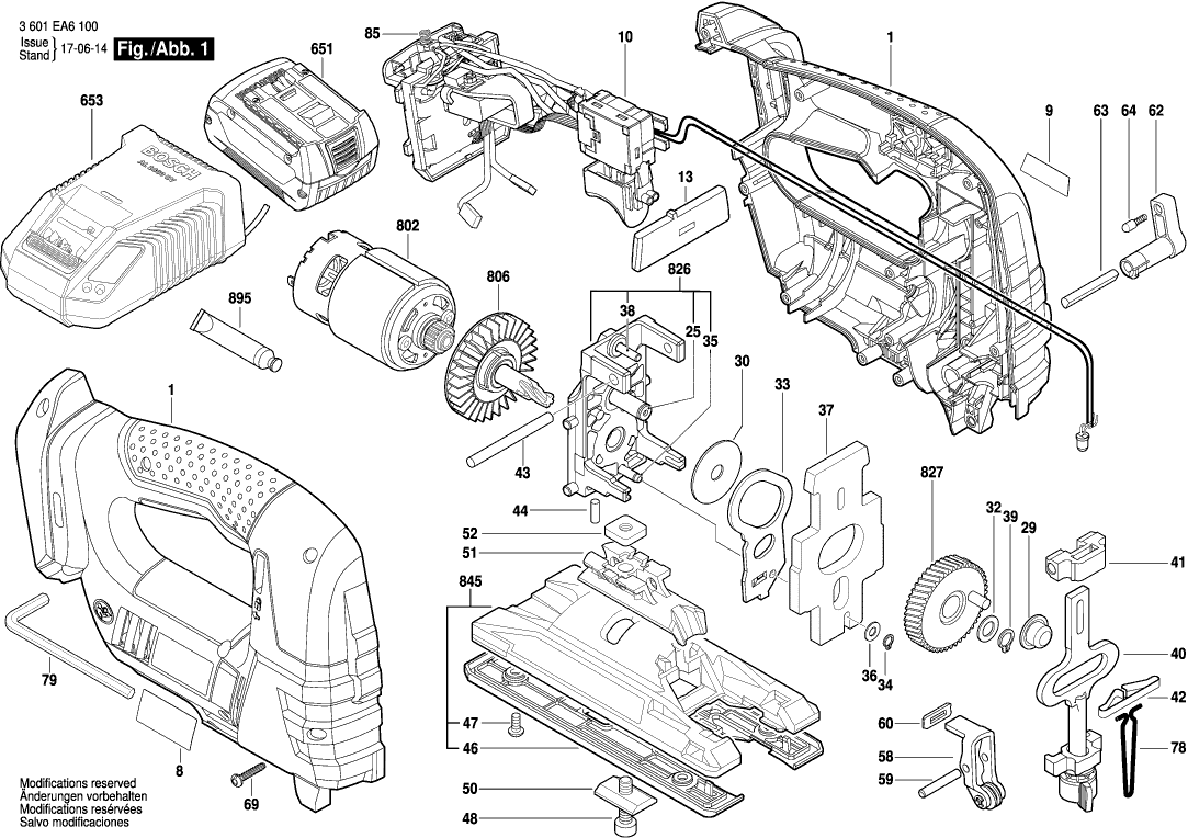 Lista de las piezas de repuesto de Bosch 3601EA6100 ( GST18V-LIB )
