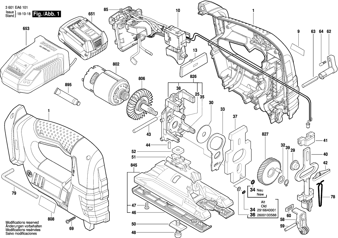 Lista de las piezas de repuesto de Bosch 3601EA6101 ( GST18V-LIB )