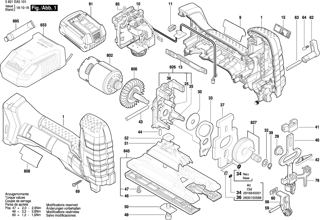 Lista de las piezas de repuesto de Bosch 3601EA5101 ( GST18V-LIS )