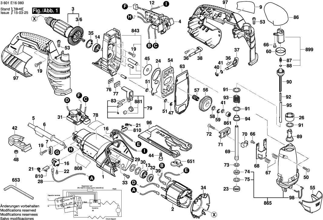 Lista de las piezas de repuesto de Bosch 3601E16000 ( GST25METAL )