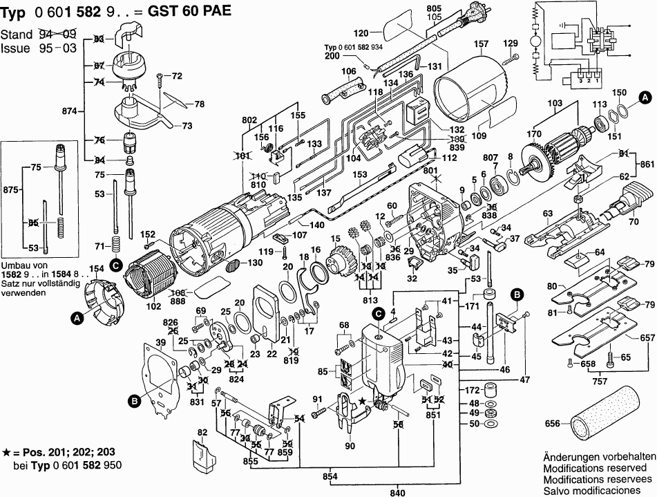 Lista de las piezas de repuesto de Bosch 0601582903 ( GST60PAE )