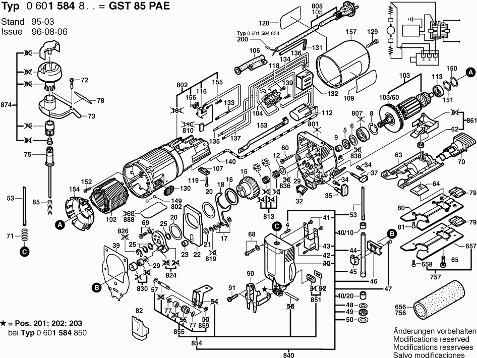 Lista de las piezas de repuesto de Bosch 0601584803 ( GST85PAE )