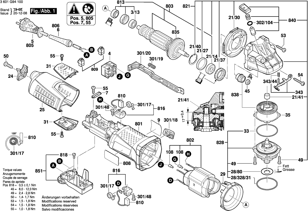 Lista de las piezas de repuesto de Bosch 3601G94100 ( GWS12-125CIEX )