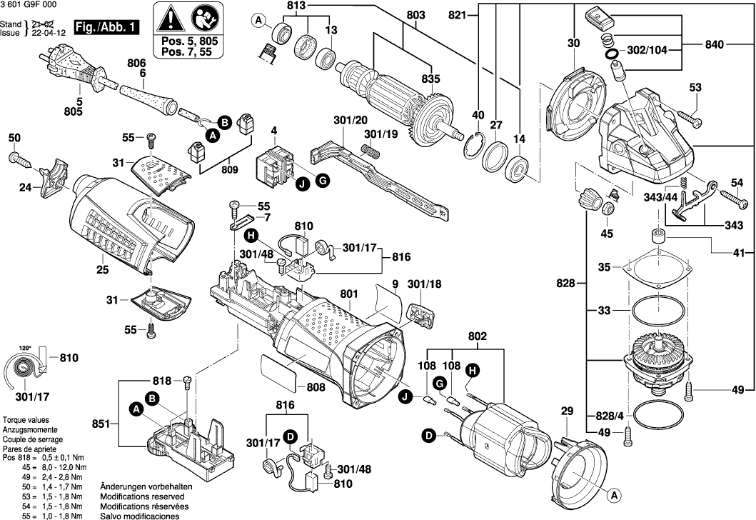 Dibujo técnico de los/las Bosch 3601G9F000 ( GWS13-125CIE )