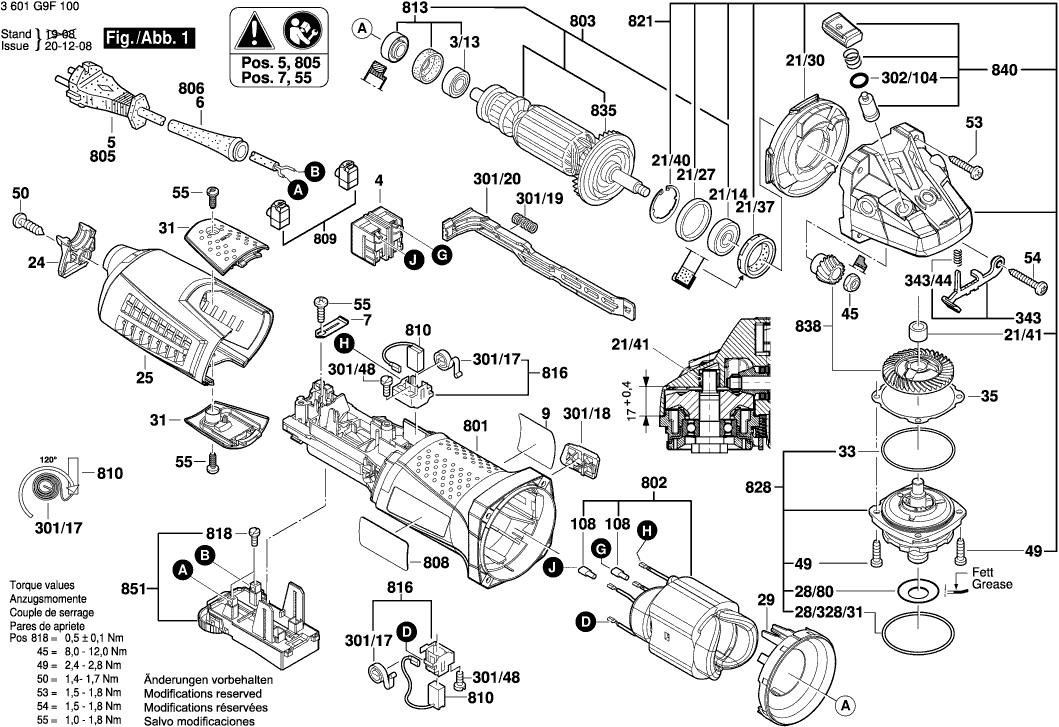 Dibujo técnico de los/las Bosch 3601G9F100 ( GWS13-125CIEX )