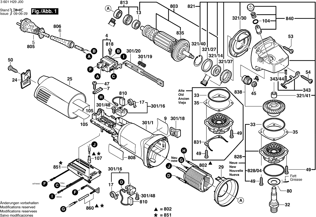 Lista de las piezas de repuesto de Bosch 3601H29J00 ( GWS14-125INOX )