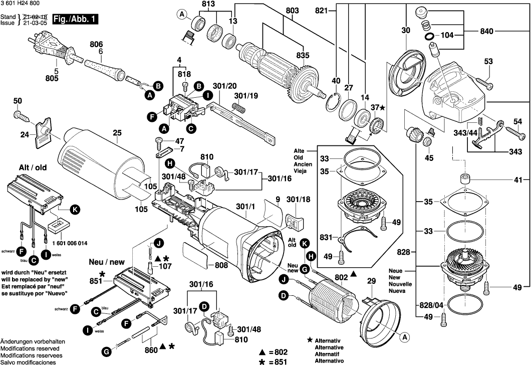 Lista de las piezas de repuesto de Bosch 3601H24800 ( GWS1400 )