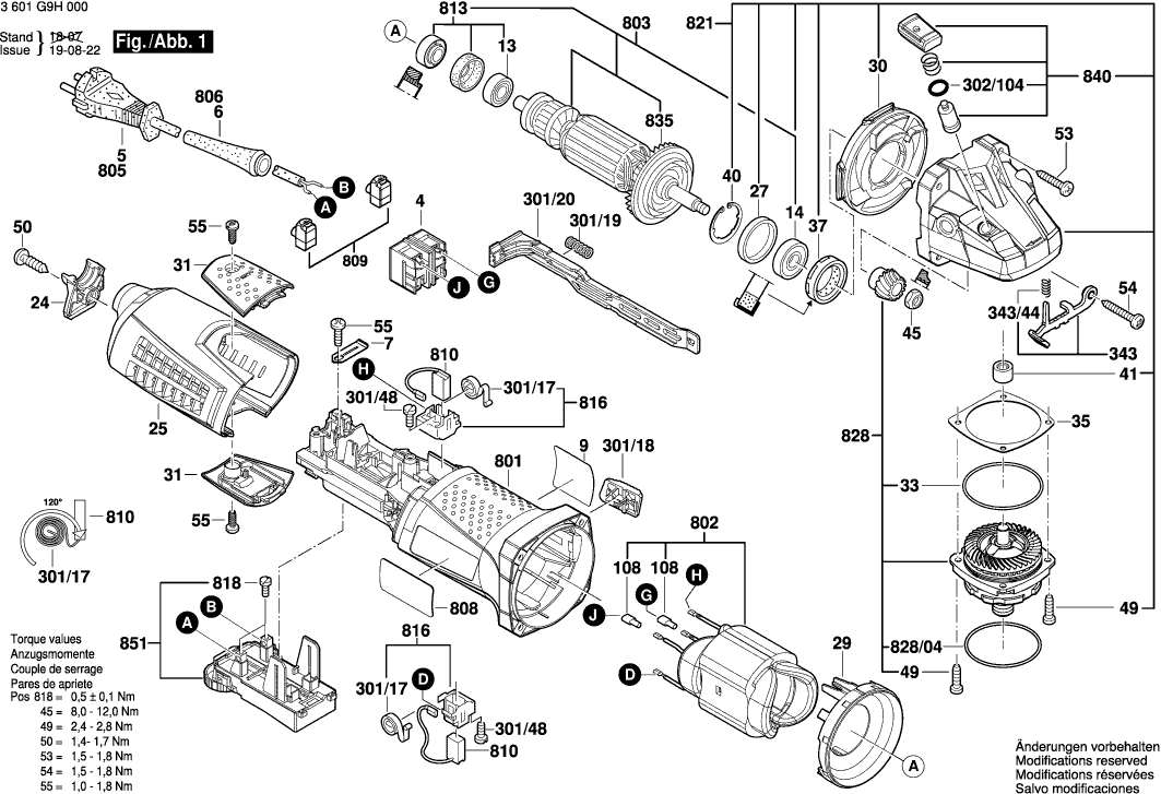 Lista de las piezas de repuesto de Bosch 3601G9J000 ( GWS17-125CIT )