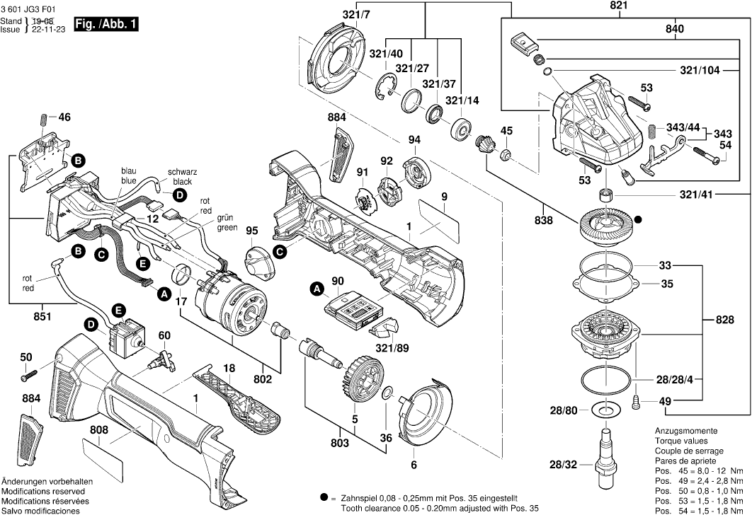 Lista de las piezas de repuesto de Bosch 3601JG3F01 ( GWS18V-10PSC )