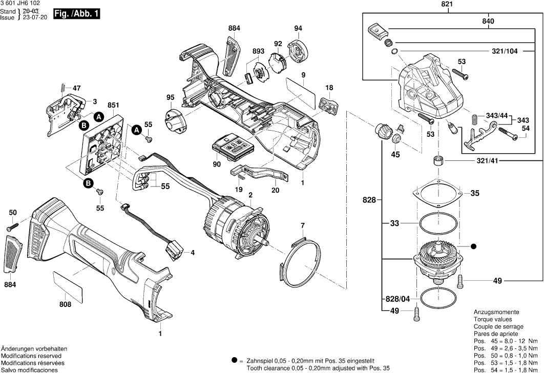 Lista de las piezas de repuesto de Bosch 3601JH6102 ( GWS18V-15SC )