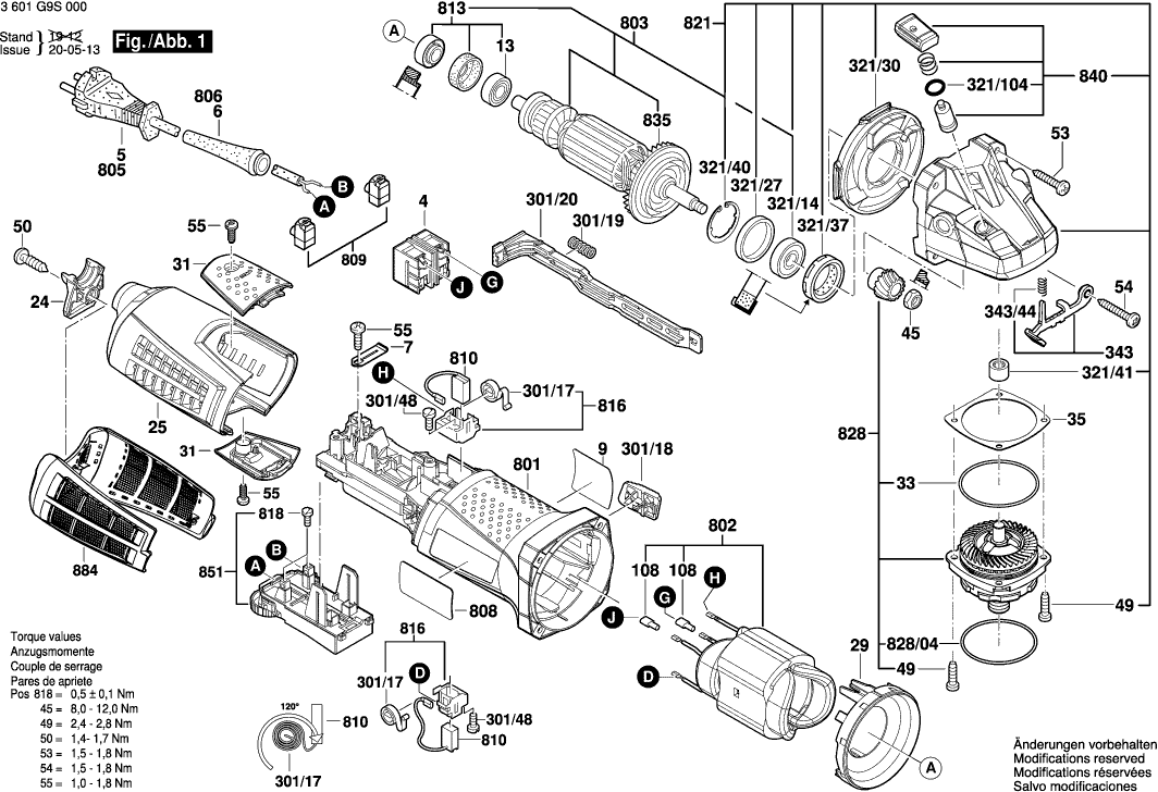 Dibujo técnico de los/las Bosch 3601G9S000 ( GWS19-125CIST )