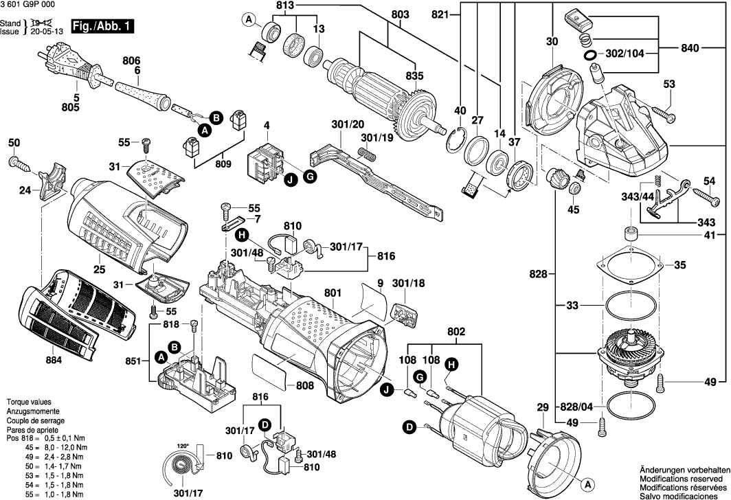 Lista de las piezas de repuesto de Bosch 3601G9P001 ( GWS19-125CIE )