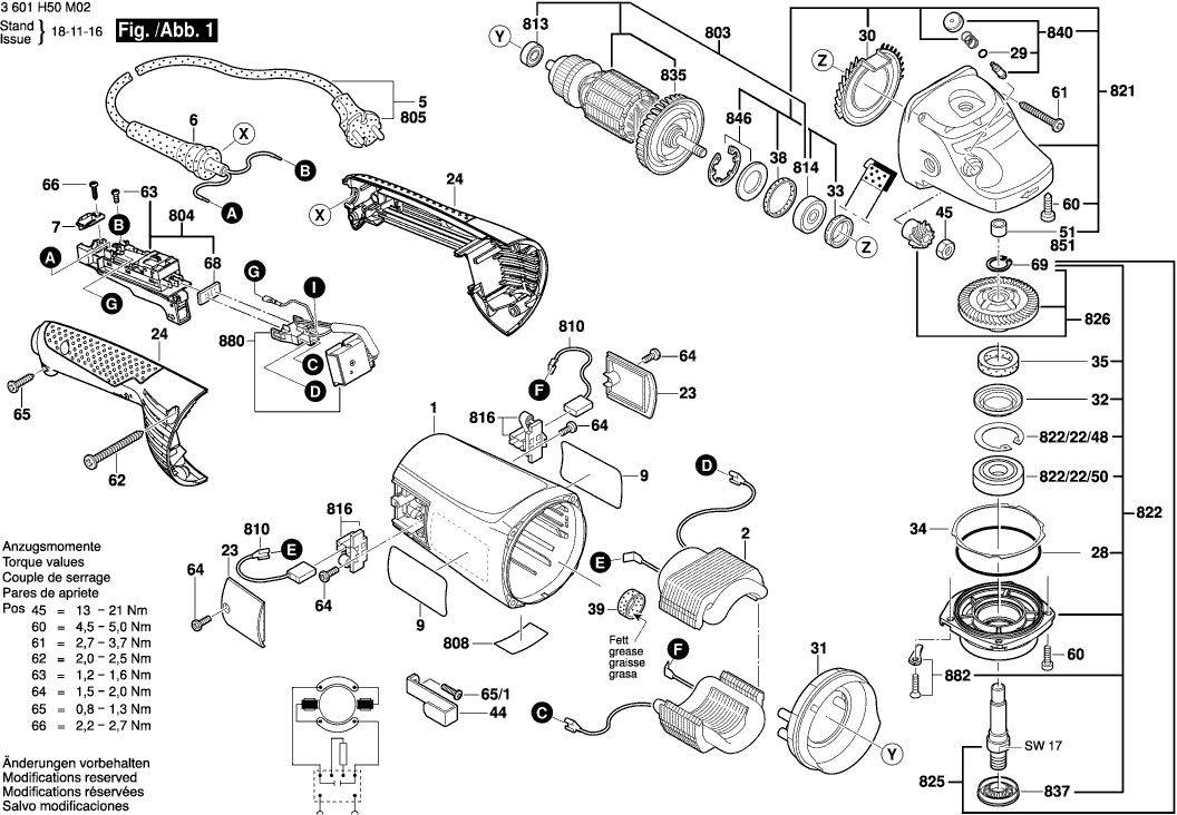 Lista de las piezas de repuesto de Bosch 3601H50M02 ( GWS20-230JH )