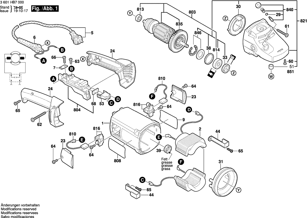 Lista de las piezas de repuesto de Bosch 3601HB70P0 ( GWS2000 )