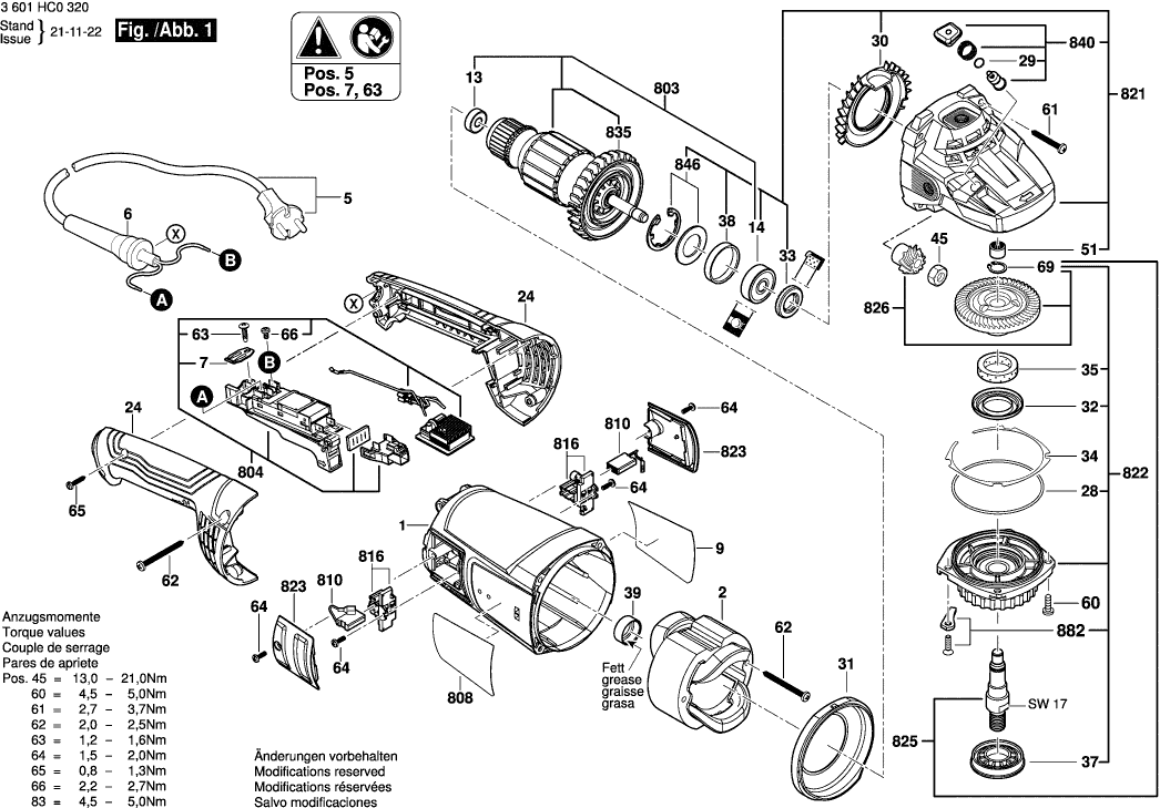 Lista de las piezas de repuesto de Bosch 3601HC0300 ( GWS22-180J )