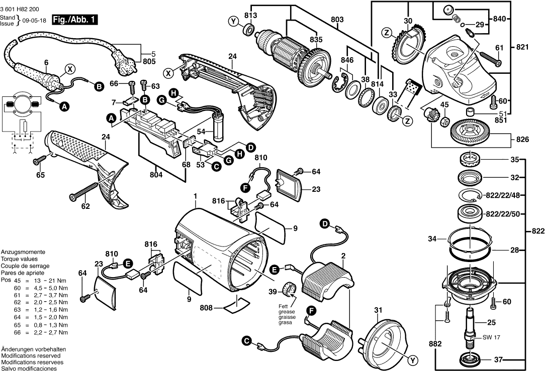 Lista de las piezas de repuesto de Bosch 3601H82200 ( GWS22-230JH )