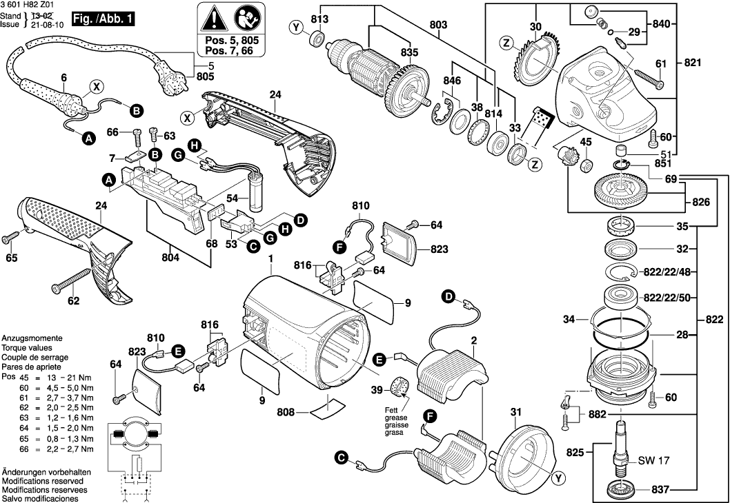 Lista de las piezas de repuesto de Bosch 3601H82Z01 ( GWS22-230JH )