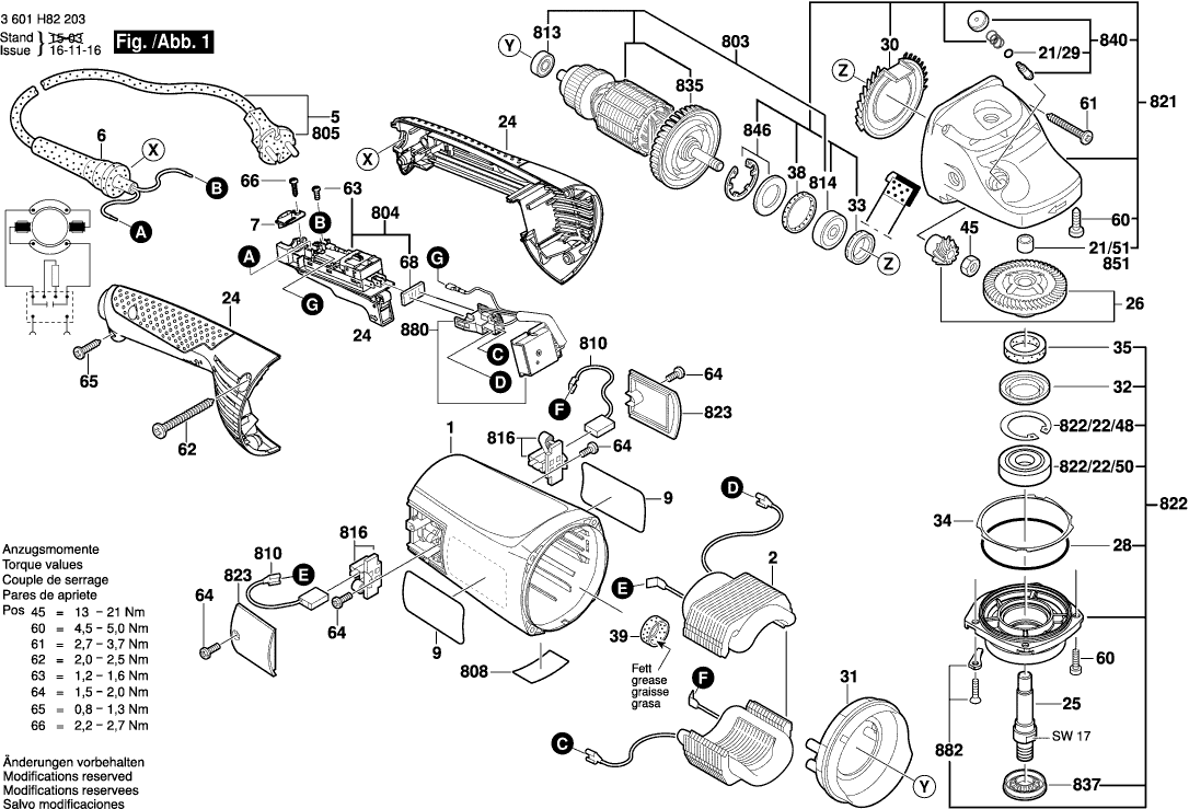Dibujo técnico de los/las Bosch 3601H82203 ( GWS22-230JH )