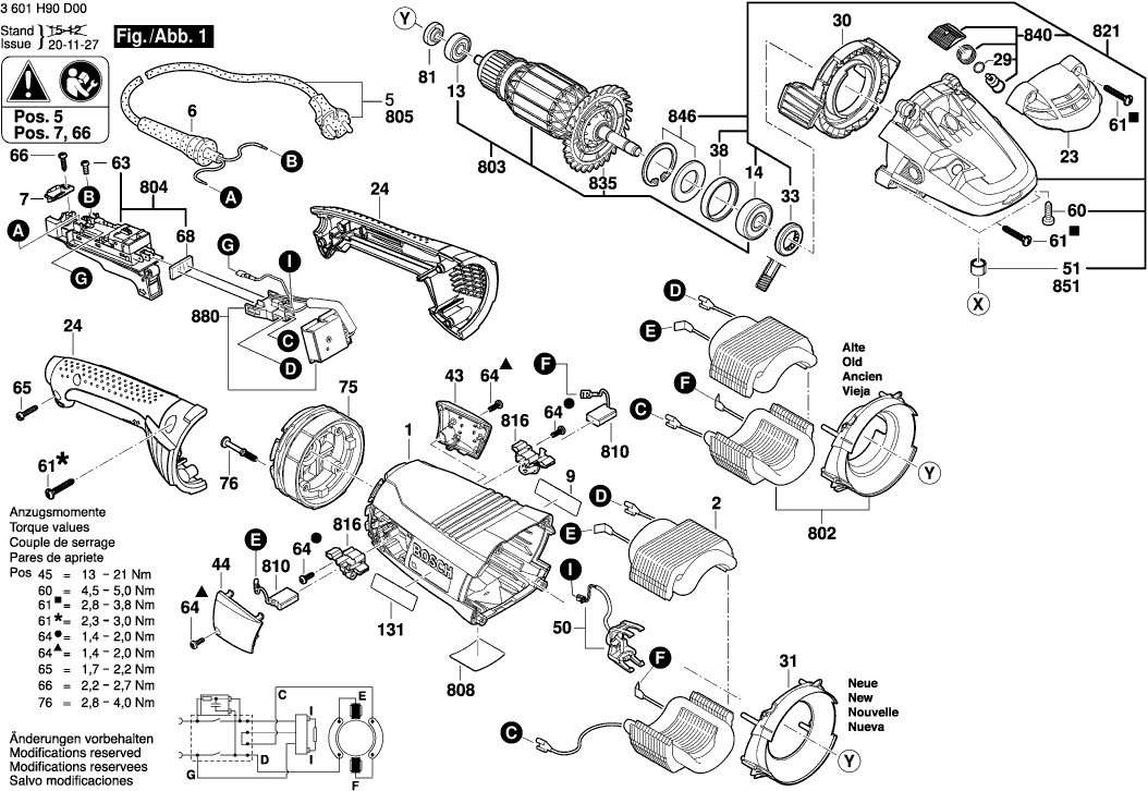 Lista de las piezas de repuesto de Bosch 3601H91D00 ( GWS22-230LVI )