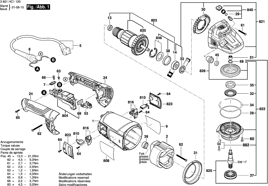 Lista de las piezas de repuesto de Bosch 3601HC1120 ( GWS2200 )