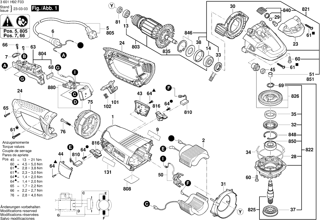 Lista de las piezas de repuesto de Bosch 3601H92F03 ( GWS24-180LVI )