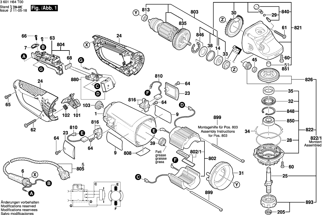 Dibujo técnico de los/las Bosch 3601H64T00 ( GWS24-230JBX )