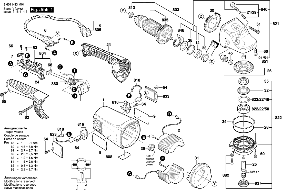Lista de las piezas de repuesto de Bosch 3601H84M31 ( GWS24-230JH )