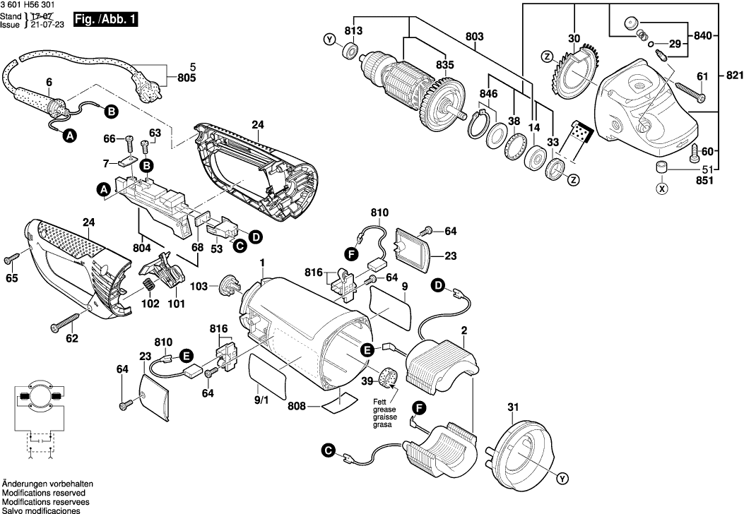 Aquí encontrará todas las piezas y dibujos técnicos disponibles de 'Bosch 3601H56301 ( GWS26-230B )'. Desde aquí podrá pedir todas las piezas deseadas directamente. Para muchas piezas de repuesto, es necesario pasar un pedido al fabricante. Dependiendo de la marca, el plazo de entrega puede variar entre una y cuatro semanas. Toda la información que tenemos está en nuestro sitio web. No podremos aconsejarle sobre lo que necesita hasta que entregue la máquina para su reparación. Tenga en cuenta lo siguiente a la hora de cursar su pedido: