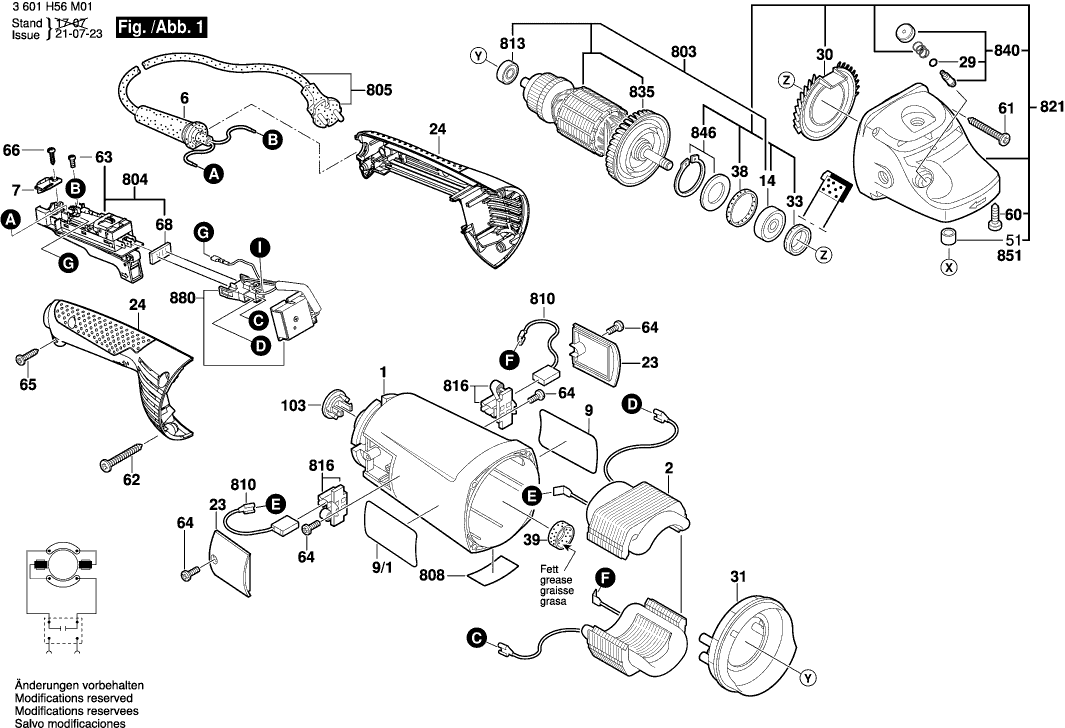 Lista de las piezas de repuesto de Bosch 3601H56M01 ( GWS26-230JH )