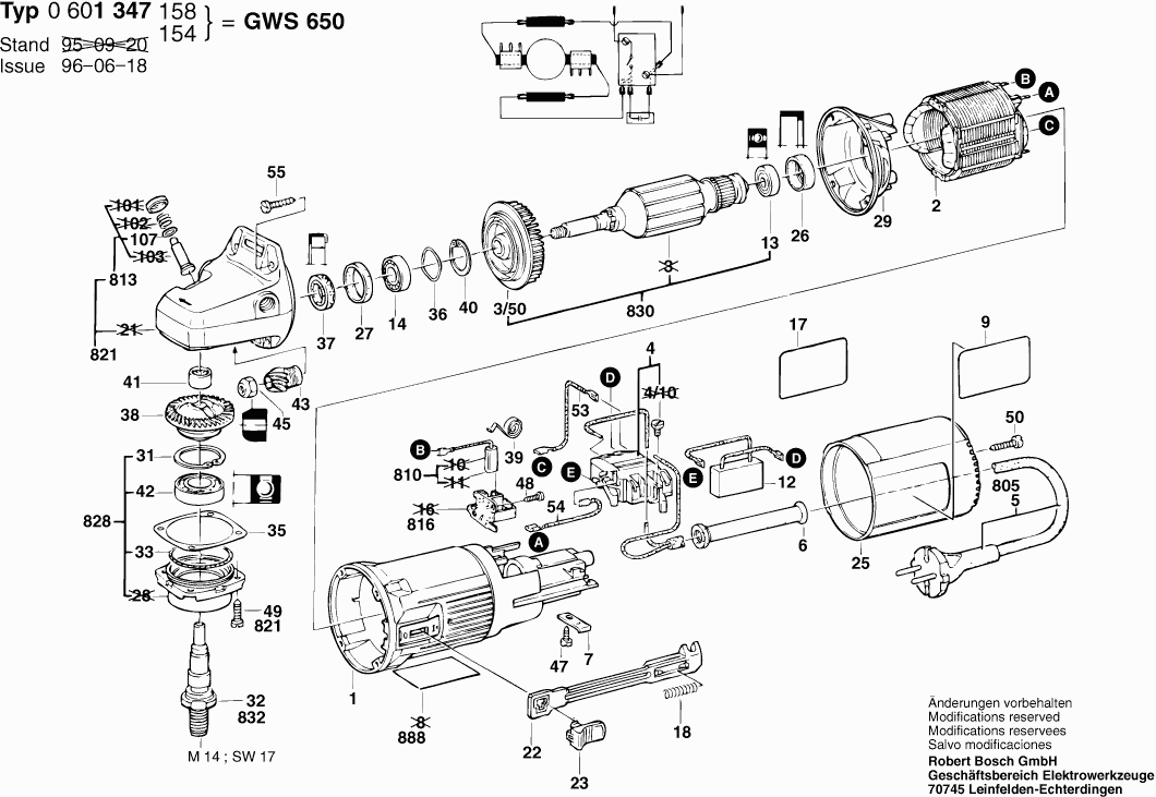 Lista de las piezas de repuesto de Bosch 0601347158 ( GWS650 )