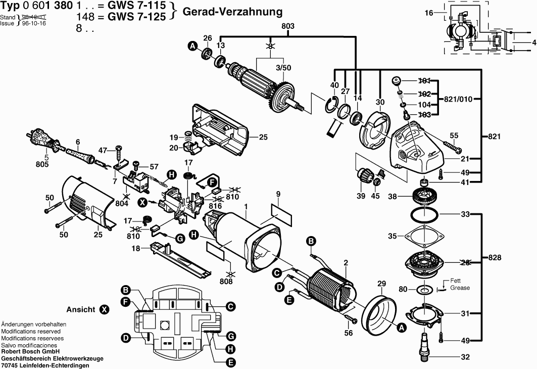 Lista de las piezas de repuesto de Bosch 0601380103 ( GWS7-115 )