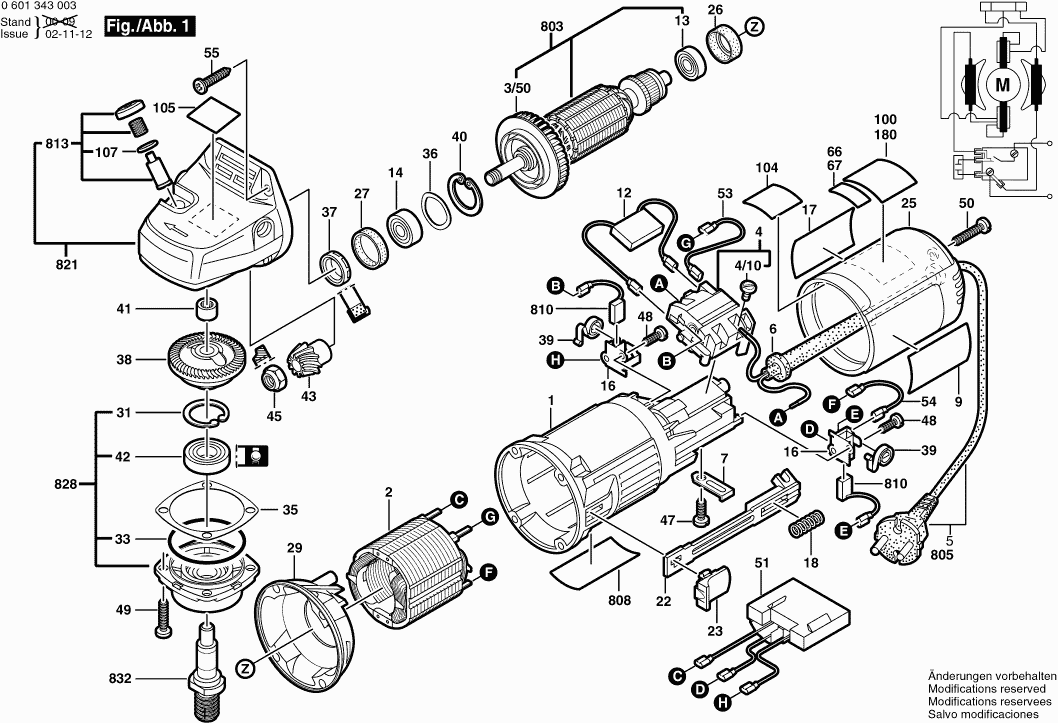 Lista de las piezas de repuesto de Bosch 0601343003 ( GWS9-125CS )