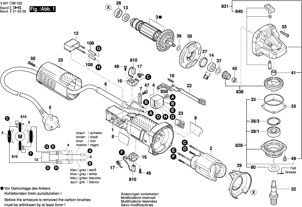 Lista de las piezas de repuesto de Bosch 3601C96022 ( GWS9-125 )
