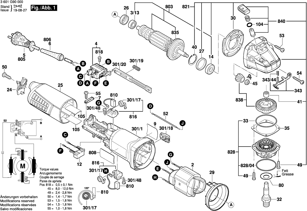 Lista de las piezas de repuesto de Bosch 3601G91000 ( GWS9-125 )
