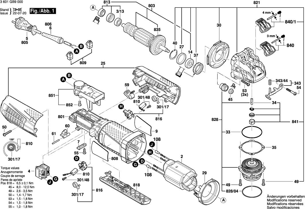 Lista de las piezas de repuesto de Bosch 3601GB9000 ( GWX15-125PS )