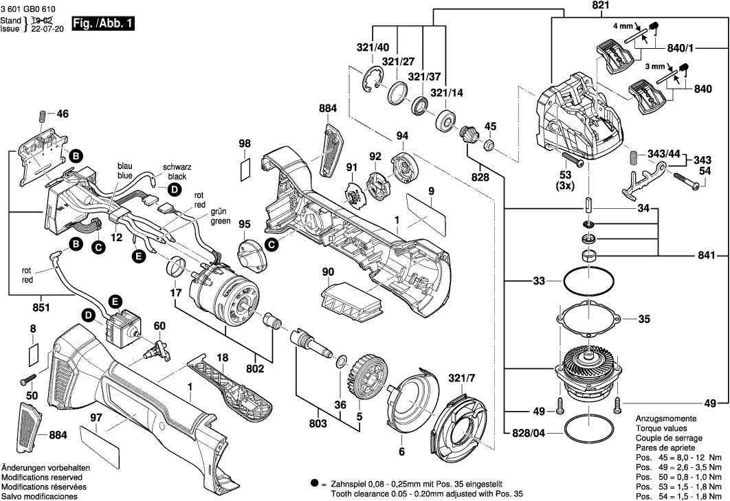 Lista de las piezas de repuesto de Bosch 3601GB0610 ( GWX18V-50PC )