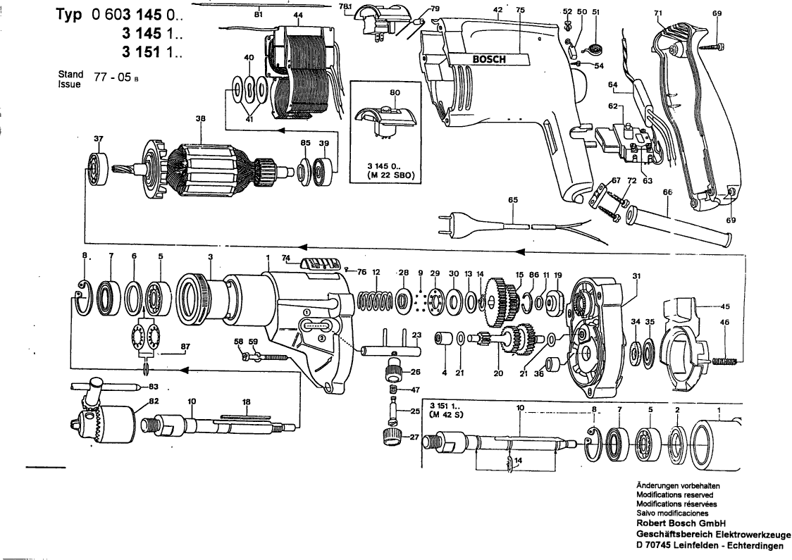 Lista de las piezas de repuesto de Bosch 0603145103 ( M42SB )