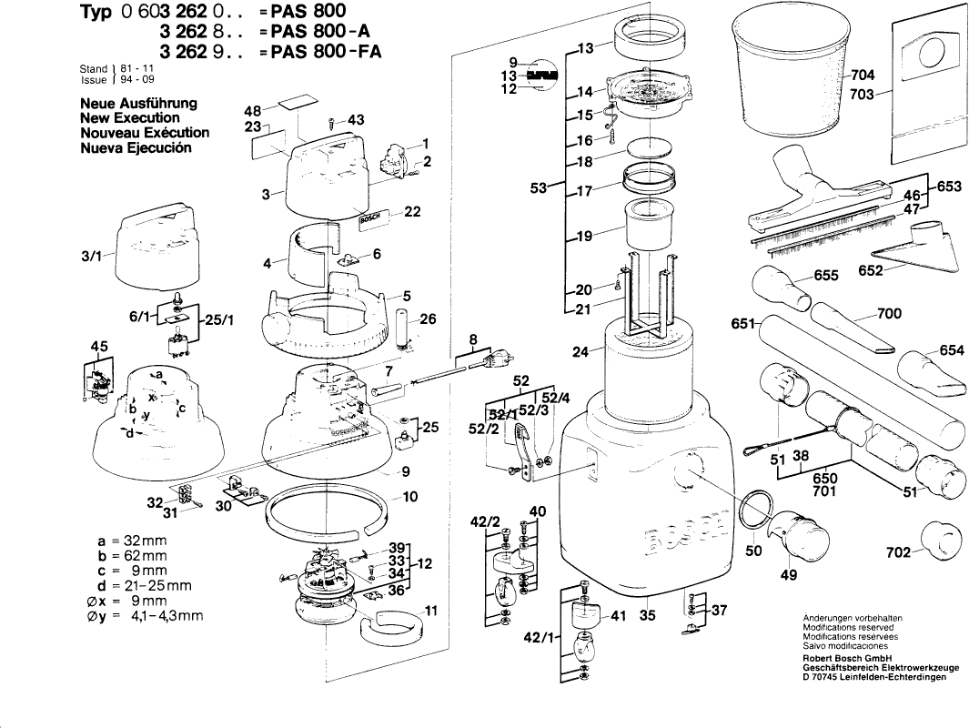 Lista de las piezas de repuesto de Bosch 0603262003 ( PAS800 )