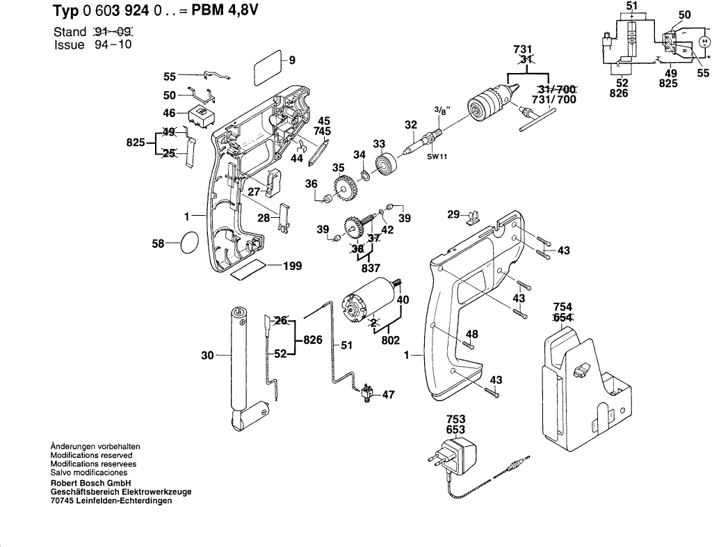 Lista de las piezas de repuesto de Bosch 0603924003 ( PBM4,8V )