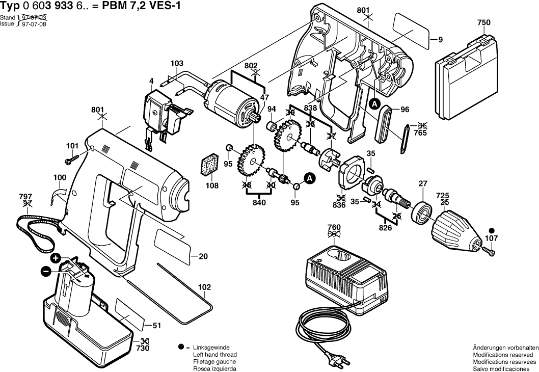 Lista de las piezas de repuesto de Bosch 0603933603 ( PBM7,2VES-1 )