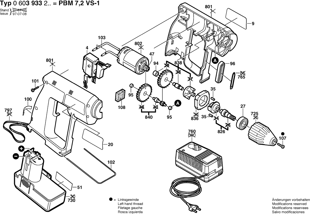 Lista de las piezas de repuesto de Bosch 0603933223 ( PBM7,2VS-1 )