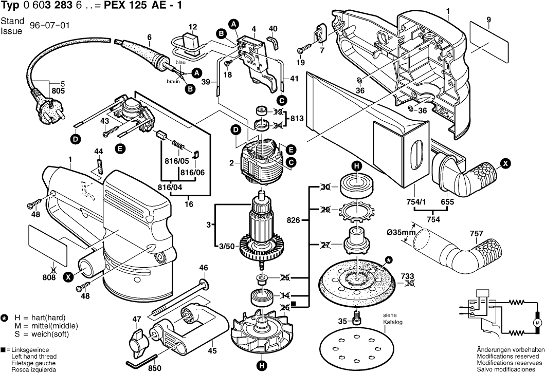 Dibujo técnico de los/las Bosch 0603283603 ( PEX125AE-1 )