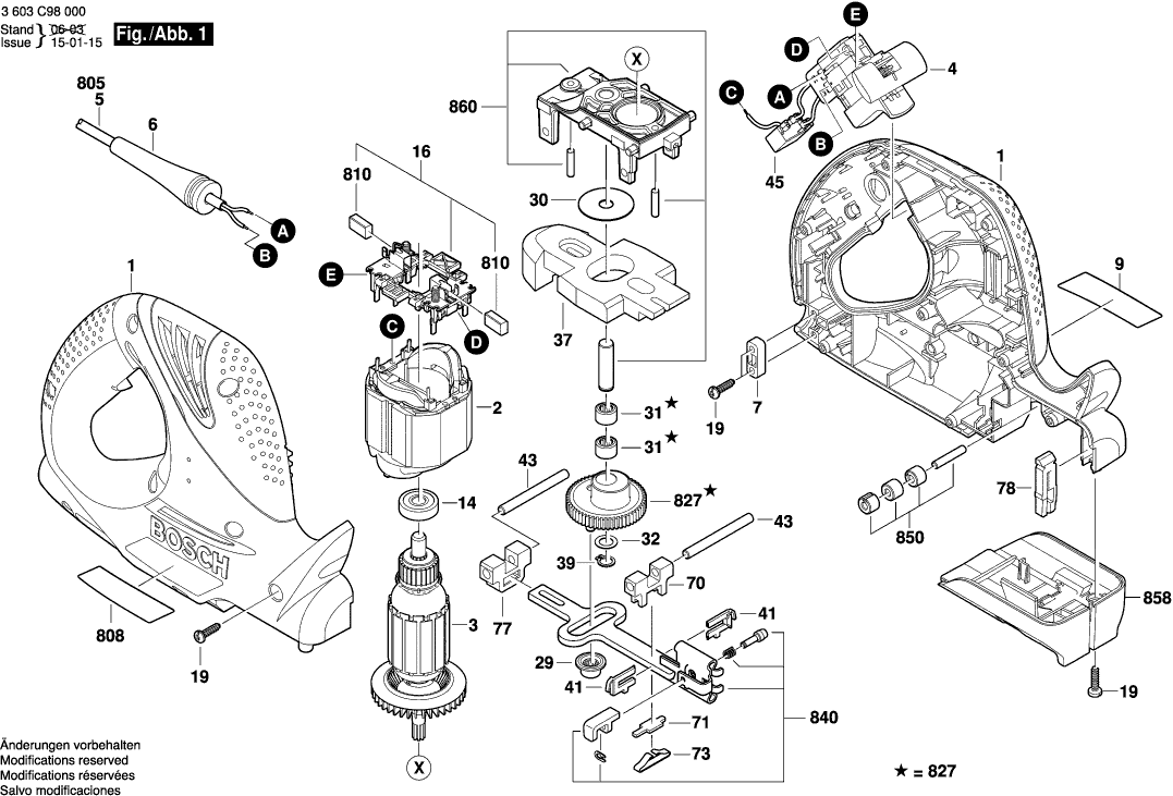 Aquí encontrará todas las piezas y dibujos técnicos disponibles de 'Bosch 3603C98000 ( PFZ500E )'. Desde aquí podrá pedir todas las piezas deseadas directamente. Para muchas piezas de repuesto, es necesario pasar un pedido al fabricante. Dependiendo de la marca, el plazo de entrega puede variar entre una y cuatro semanas. Toda la información que tenemos está en nuestro sitio web. No podremos aconsejarle sobre lo que necesita hasta que entregue la máquina para su reparación. Tenga en cuenta lo siguiente a la hora de cursar su pedido: