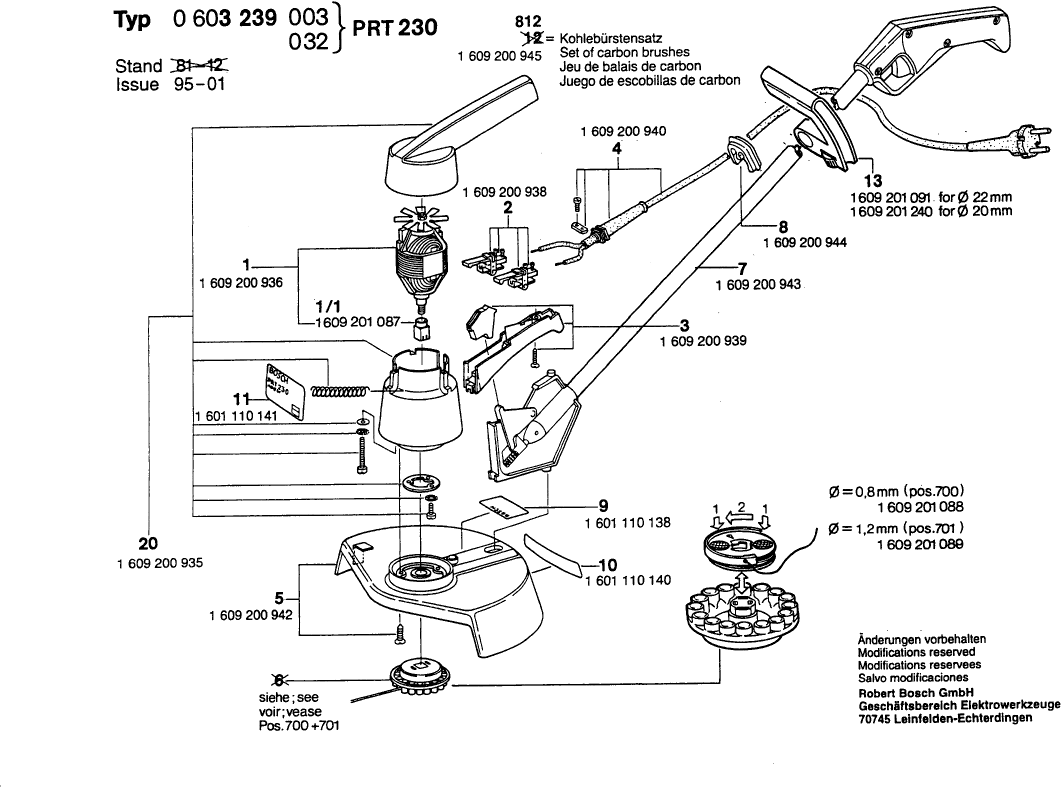 Lista de las piezas de repuesto de Bosch 0603239003 ( PRT230 )